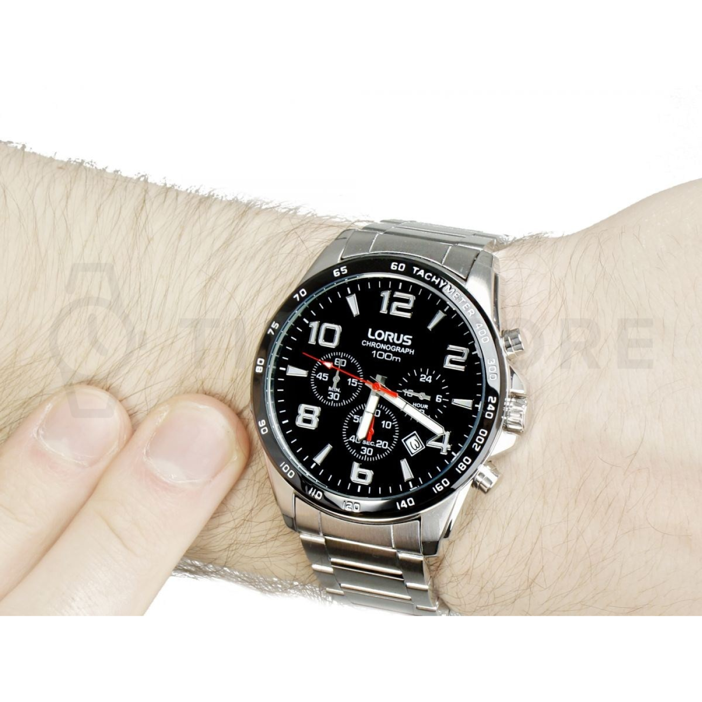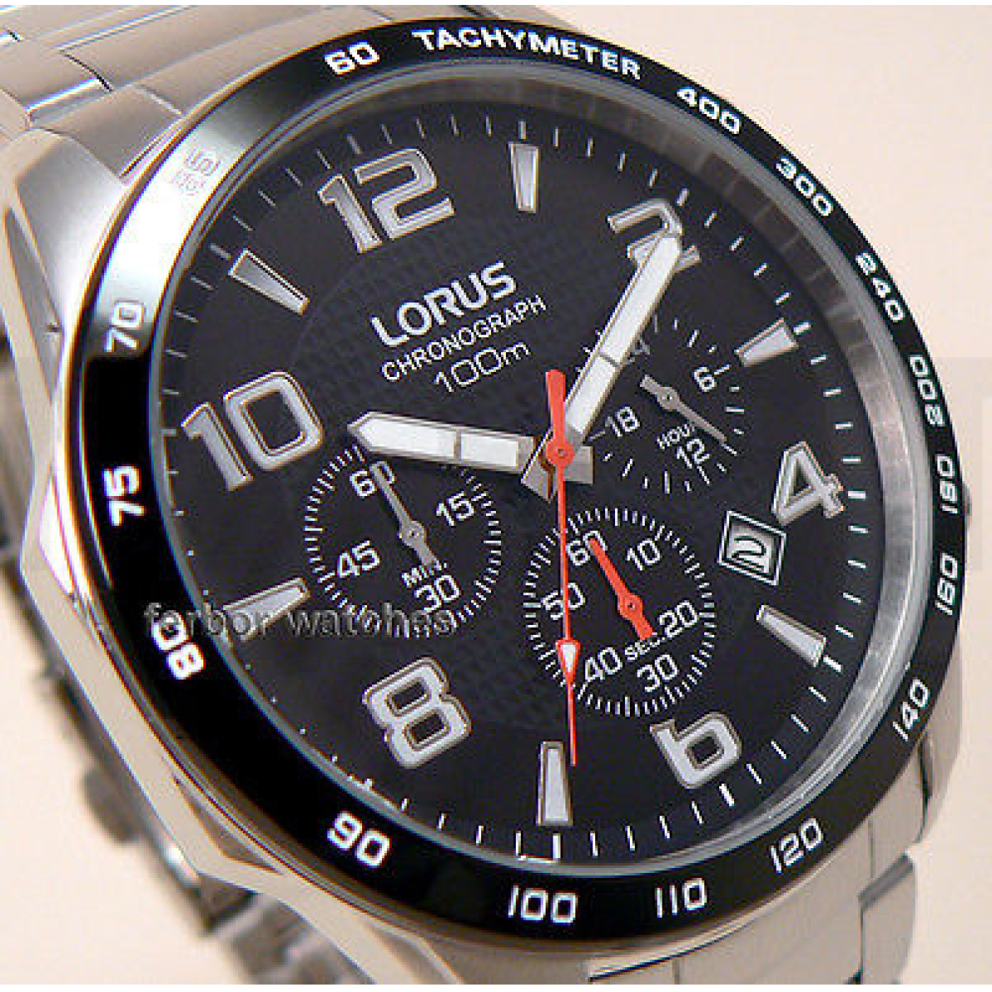 - Cronómetro, Taquímetro, Agujas luminiscentes, Cronógrafo